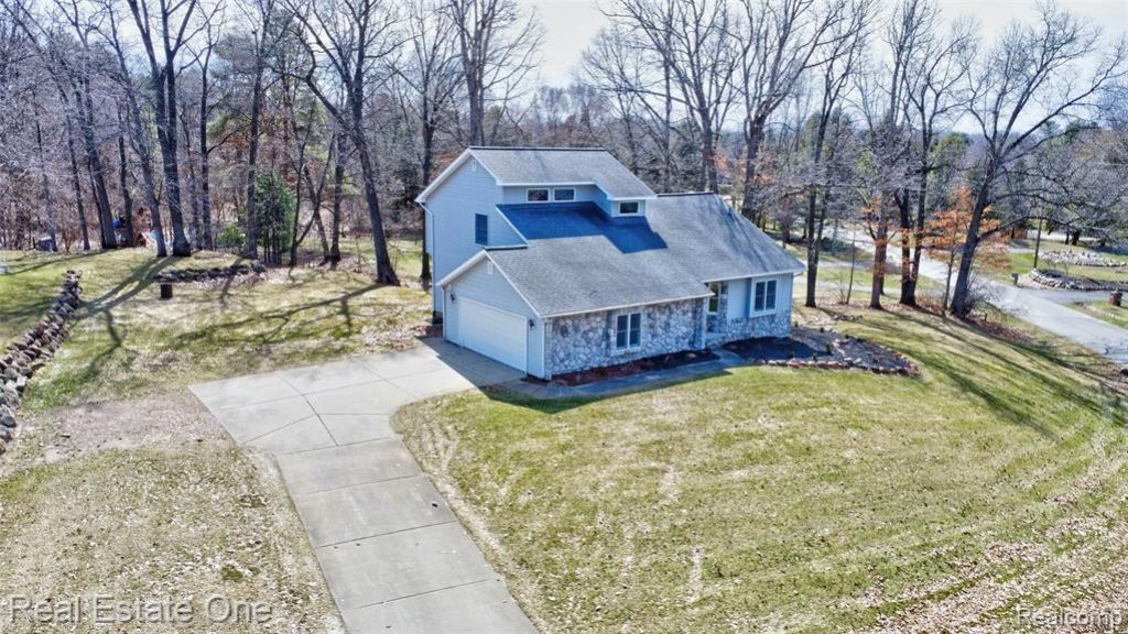 Beautiful one-and-a-half-story home with magnificent views of private, all-sports Lake Lapeer. Enjoy true lake-style living and boating without the lakefront taxes. This spectacular home sits high above the water on a picturesque lot, offering breathtaking panoramic views of the lake. As you enter, you’re welcomed by an open, airy layout featuring a spacious great room with soaring vaulted ceilings and walls of windows that flood the space with natural light while showcasing incredible lake views. A sliding doorwall provides access to the expansive deck, perfect for relaxing or entertaining, and the gas fireplace adds warmth and charm. All new flooring completes the main living area. The large kitchen offers abundant cabinet storage, generous granite counter space, beautiful ceramic flooring, and plenty of natural light—ideal for both everyday living and entertaining. The home features a spacious primary suite with a walk-in closet and a large private bathroom with a jetted tub. The main-floor laundry room adds everyday convenience. Upstairs, the second level opens to a large loft area and two generously sized bedrooms, each with its own walk-in closet, along with a full bathroom featuring a tub and shower. Additional updates include new wood flooring, carpeting, and Andersen windows throughout. The walkout basement is studded and plumbed for a bathroom, ready for your finishing touches. Outside, enjoy the incredible almost 1/2 acreyard with sweeping lake views, a huge deck ideal for entertaining, and a lower walkout patio for even more outdoor living space. This is a must-see home—don’t miss your opportunity to own a Lake Lapeer property!