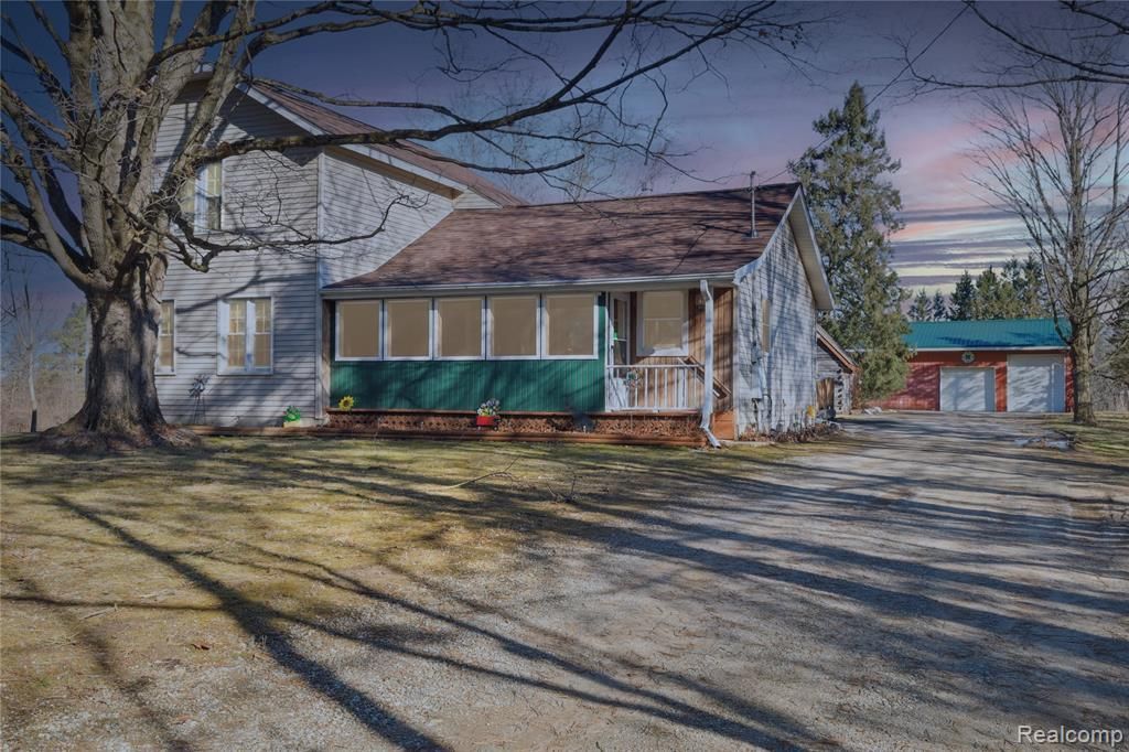 Private 25.5 Acre Estate in Grand Blanc – A Rare Opportunity! Located in Grand Blanc within the highly desirable Goodrich Area Schools district, this beautifully maintained 1,798 sq. ft. home has been lovingly cared for by the same owners for years and offers 3 bedrooms and 2 full baths, including a first-floor master suite with private bath. The home features a stunning two-story great room with fireplace, a spacious and well-sized sunroom with supplemental heating overlooking the backyard, and an updated kitchen with granite countertops, newer appliances, and ample cabinetry, along with a large laundry room and a second kitchen on the same floor for added convenience and functionality. Set on 25.5 acres of peaceful, wooded land with a running creek, apple orchard, and abundant wildlife, this property is perfect for those seeking privacy, hunting, or simply enjoying nature. The exterior includes a 3-car detached garage and two large barns (approx. 1,225 sq ft with 10’ height and 1,200 sq ft with 14’ height, both with concrete floors and upper storage), along with a handicap-accessible rail at the rear entrance for added convenience. A charming children’s playhouse adds a special touch, creating a fun and inviting space for kids or grandchildren. Nestled far back from the road with serene views from every window, this property offers endless possibilities while still being conveniently located near expressways and amenities. Adjacent property at 7149 Burpee Rd is also available, featuring a newer well and septic. Don’t miss this rare opportunity—schedule your private showing today!