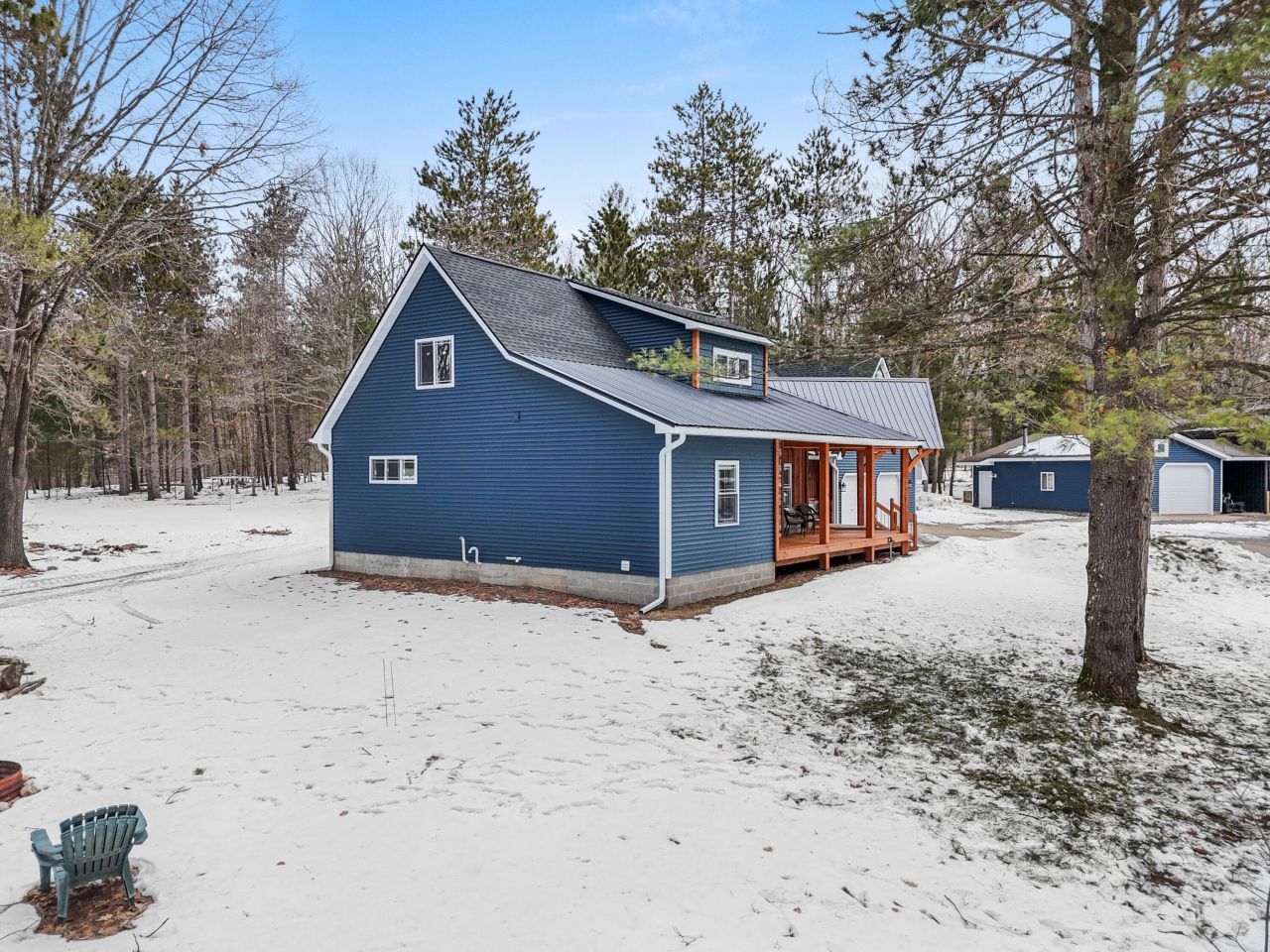 Newly built 2025 Craftsman-style home located on 4 private acres in the heart of Higgins Lake. This stunning 2-story, 4 bedroom, 3 bathroom custom home features an Alpine-style covered front porch constructed entirely from walnut. oak and pine harvested directly from the property, showcasing true Up North craftsmanship.Inside, the home offers 9-foot ceilings, custom wood window sills, Pella sliding doors, stainless steel appliances, and granite countertops throughout. The living room centers around a beautiful stone gas fireplace (Xtrordinair Artisan with hammered face), creating a warm and inviting atmosphere. The main-level primary suite includes a walk-in closet and its own beautiful bathroom. The guest bedoom on the main level has a private walkout slider to the deck. A convenient main-floor laundry room adds everyday functionality. Upstairs are two spacious bedrooms, one featuring a walkout balcony and skylight, along with generous closet space. The upstairs bathroom includes a full tub with glass doors and double sinks. All bathrooms are equipped with exhaust fans and built-in stereo sound. The full basement is exceptionally clean and includes two crawl spaces with plastic vapor barriers. Mechanical upgrades include a new furnace, central air conditioning, and tankless on-demand hot water system. The property also includes a 2-car attached garage, a separate shop, and an RV carport. Located on Birch Road, this home offers direct access to ORV and snowmobile trails and is just 2 miles from Higgins Lake, one of Michigans most beautiful destinations. This is true Up North living with year-round recreation right outside your driveway.
