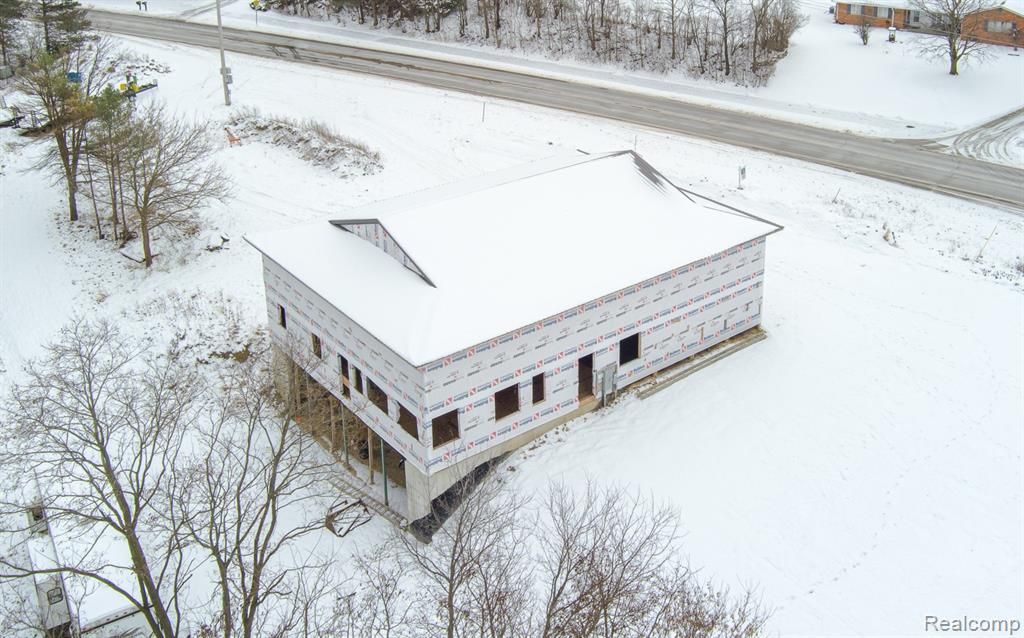Distinct New-Construction low maintenence Barndominium -- 2-Story living boasts 3400sf, w/converible/flexible lower level that can be designed for 1500sf, 12ft ceilings, multi-car garage OR finished living space. BUYER NEEDS CONSTRUCTION LOAN FINANCING. Property hosts outstanding vistas just a minute from Goodrich Country Club Golf Course. Purchase now & be in time for all the finishes, including designing the modern main floor plan as this home has an open concept design with extraordinary flexibility. Sited for sweeping landscape views, this home was planned for owners who need serious custom vehicle storage/design OR other home business needs: large capacity storage/studio/e-commerce goods/landscaping or recreational equipment, a half-pipe or basketball court, to name a few. Main level boasts hydronix heated concrete flooring (current design is for all 3 levels) that provides flexibility of design and maintenance. The attached garage has a 12x14 door that takes you into a 2-Story open ceiling space for maxium use. Expansive window placement provides maxium light exposure throughout the home. 2nd Story holds 2 bedrooms/loft, 2 full baths, 2nd Laundry, and elevator for all 3-levels is optional. LL plumbed for bath and kitchenette and/or full garage as mentioned. Walkability to the Village of Goodrich is a bonus & offers small-town conveniences & recreational options. Residents enjoy downtown shopping & dining, community parks, walking & biking trails, a public library, regualr village events and easy access to Goodrich Schools down the street. This property gives you country-club proximity plus village lifestyle amenities. Master Builder is the seller & is ready to translate your vision coupled with his expertise, bringing this home to life. Exterior pic is simulated. Call L/A for CONSTRUCTION LOAN FINANCING and/or PRIVATE TOUR. Barndo is lower costs to maintain & quicker to build! Parcel A in documents shows the lot. Don't delay CALL TODAY!